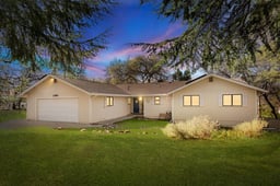 The living room and family room blend together seamlessly and are anchored by stunning vaulted wood ceilings and a cozy propane fireplace. The leased solar, at under fifty dollars a month, keeps monthly expenses low and predictable. The primary suite brings a daily sense of ease with a soaking tub, a spacious walk in closet, and plenty of room to unwind.